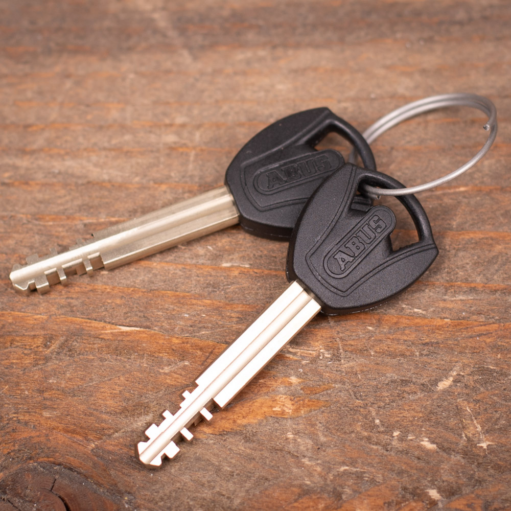 ABUS levert dit kettingslot, net als alle andere sloten met een XPlus en Plus cilinder, met een sleutelcodekaart. Bewaar deze goed want deze is nodig voor het bijbestellen van een extra sleutel in geval van verlies. Noot: in tegenstelling tot vrijwel alle andere kettingsloten geeft deze sleutelcodekaart óók de mogelijkheid om een nieuw slot te bestellen met hetzelfde cilinderslot!