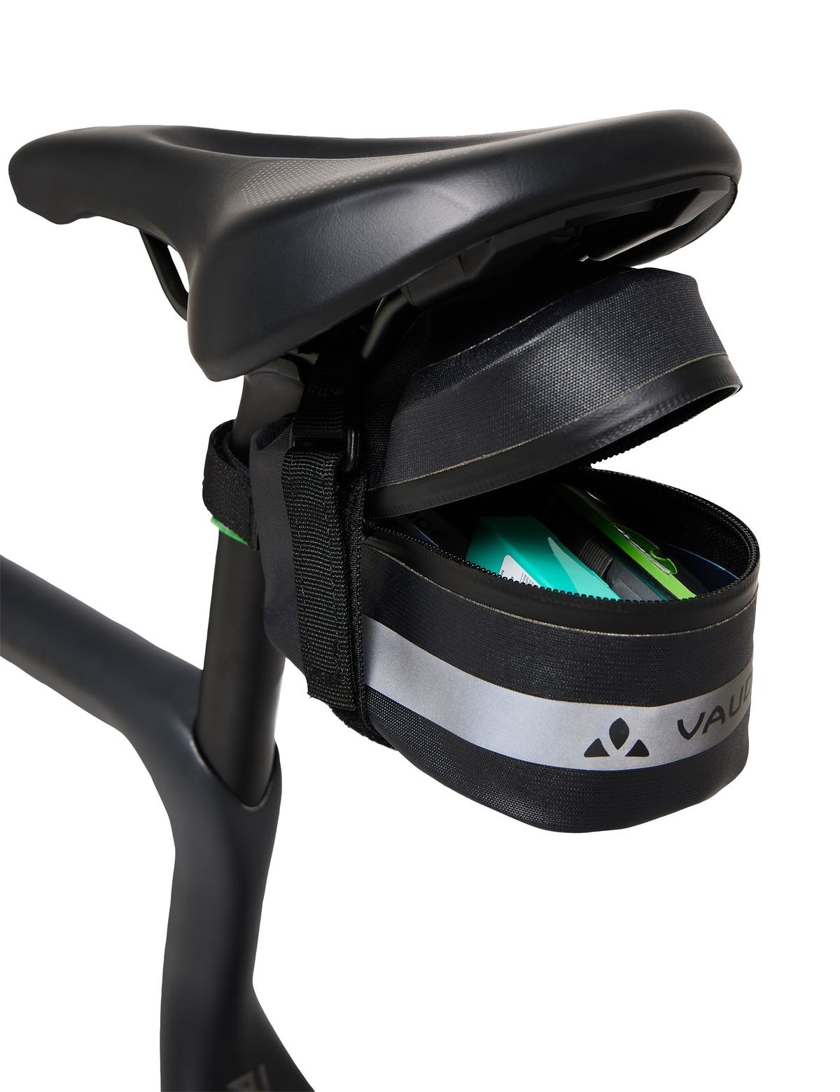 Het zadeltas is gemakkelijk onder het zadel en aan de zadelpen te bevestigen met twee klittenbandsluitingen.
